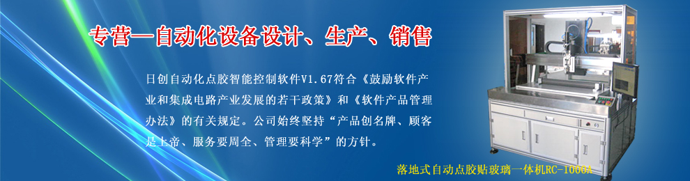 東莞市日創自動化設備有限公司專注研發制造:全自動點膠機,AB膠(雙液)自動灌膠機,自動灌膠機,導電膠三角形點膠機,臺式(雙工位)點膠機,焊錫機,螺絲機,非標設備等!
